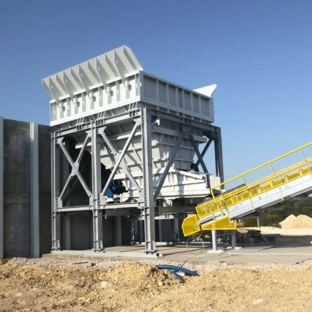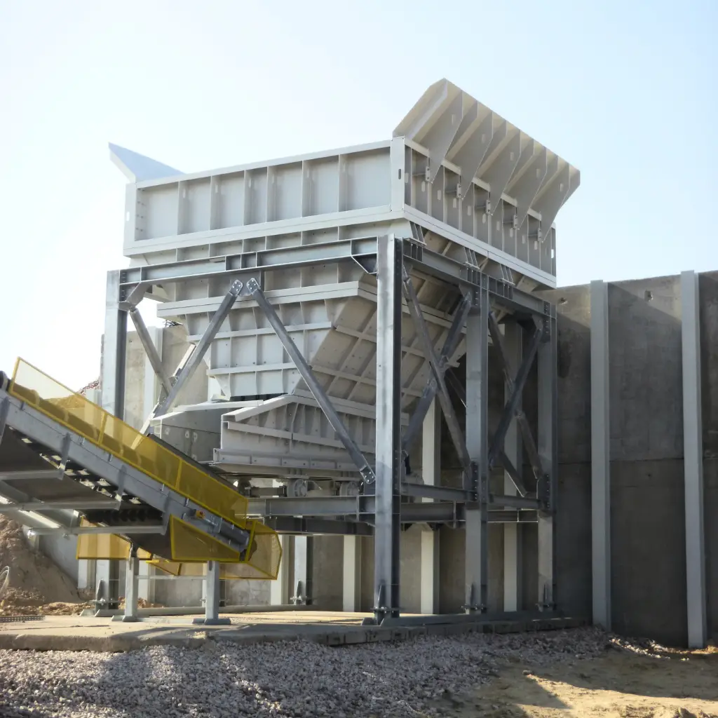 – stałe oraz uchylne kraty separujące lub ruszty do wstępnej klasyfikacji materiału,