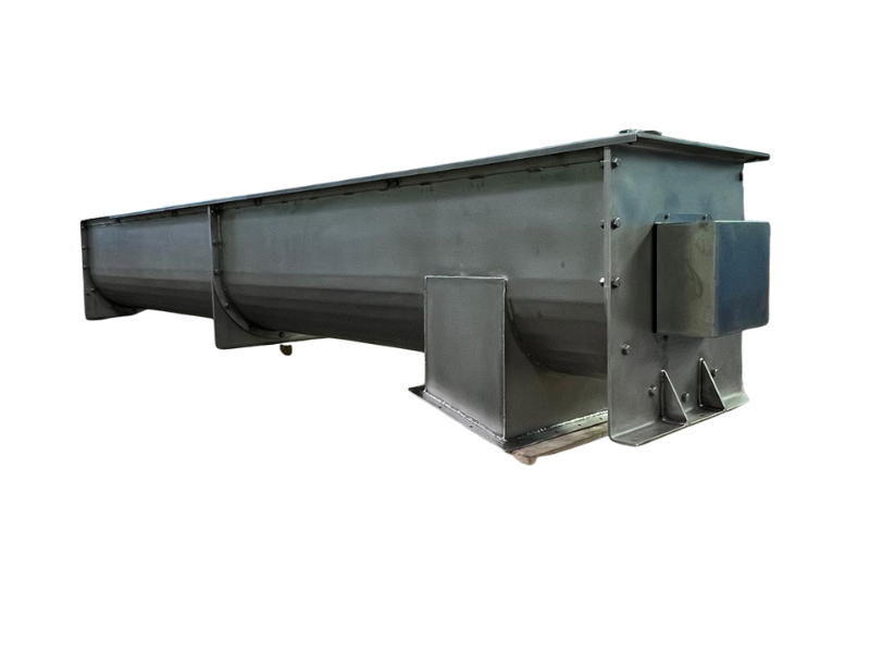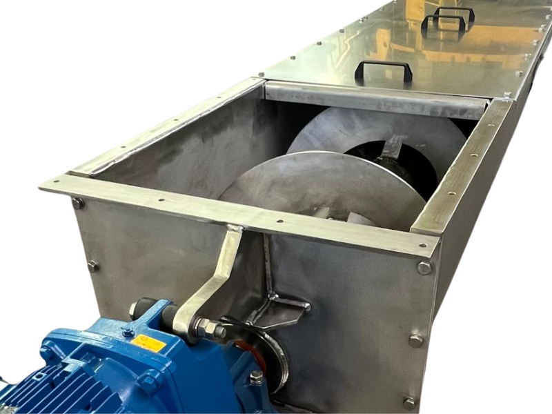 - Przenośniki korytowe: Posiadają obudowę przypominającą kształtem literę U, zakrywaną odkręcanymi pokrywami. Umożliwiają łatwy dostęp do ślimaka w celu czyszczenia i stosowane są, gdy istnieje wysokie prawdopodobieństwo blokowania się transportu.